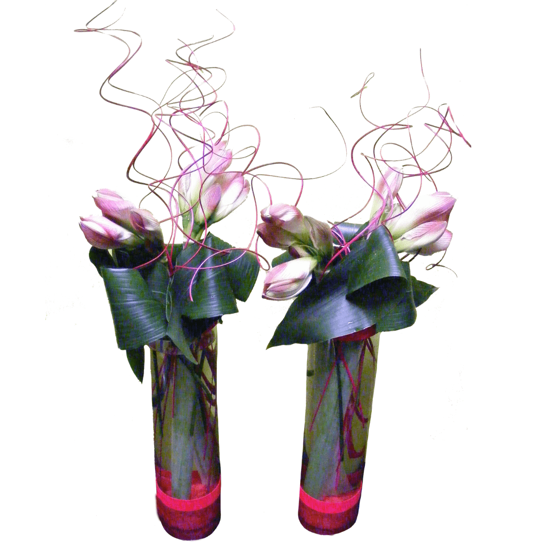 Beautiful modern vase display designed with Amaryllis. Small pictured.