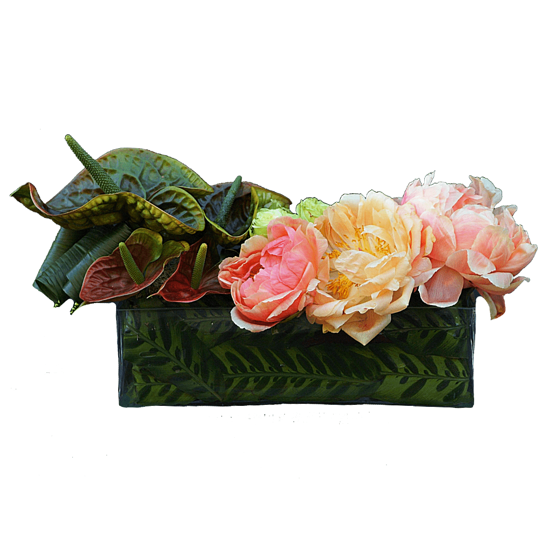 Beautiful modern Vase designed with Anthurium, Roses and Peonies. Large pictured.