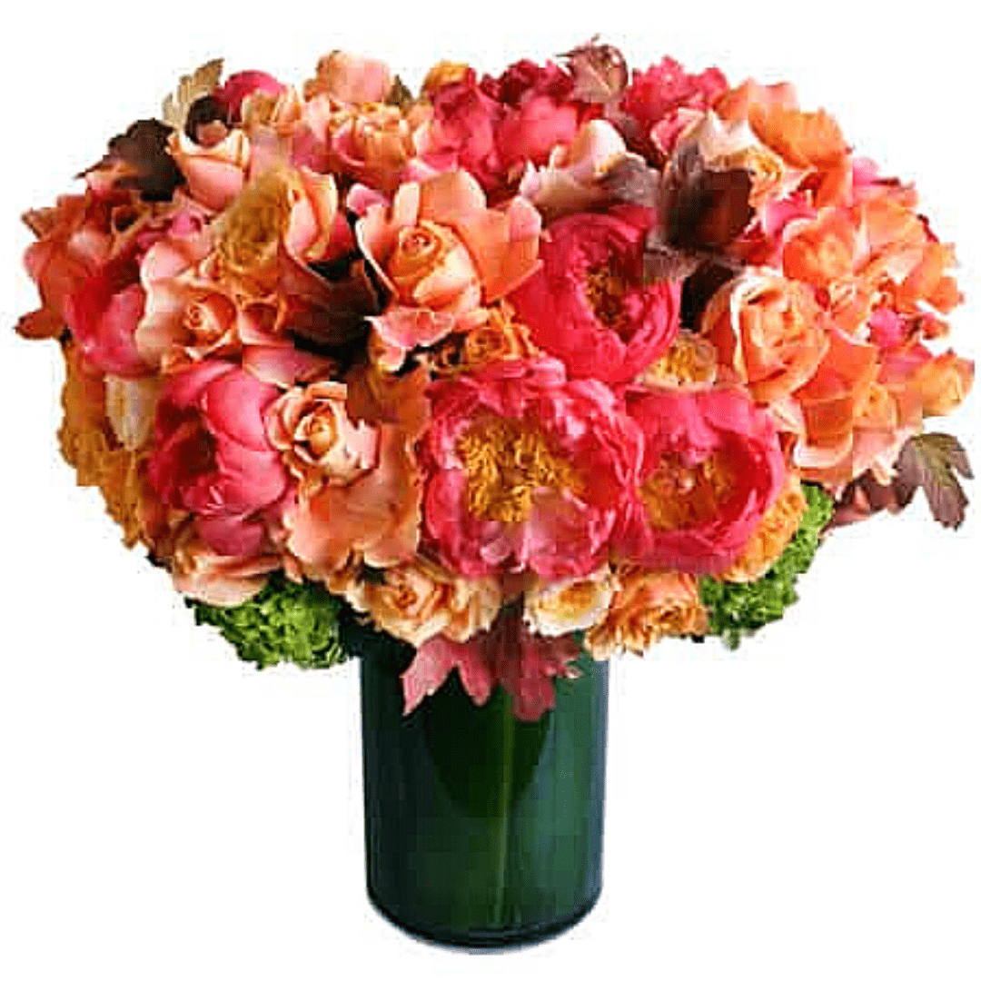 Beautiful modern vase display designed with Hydrangeas, Peonies and Roses. Extra-large pictured.