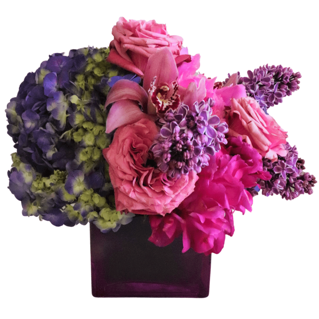 This beautiful luxurious vase arrangement is designed with hydrangeas, roses, and peonies. Small pictured.