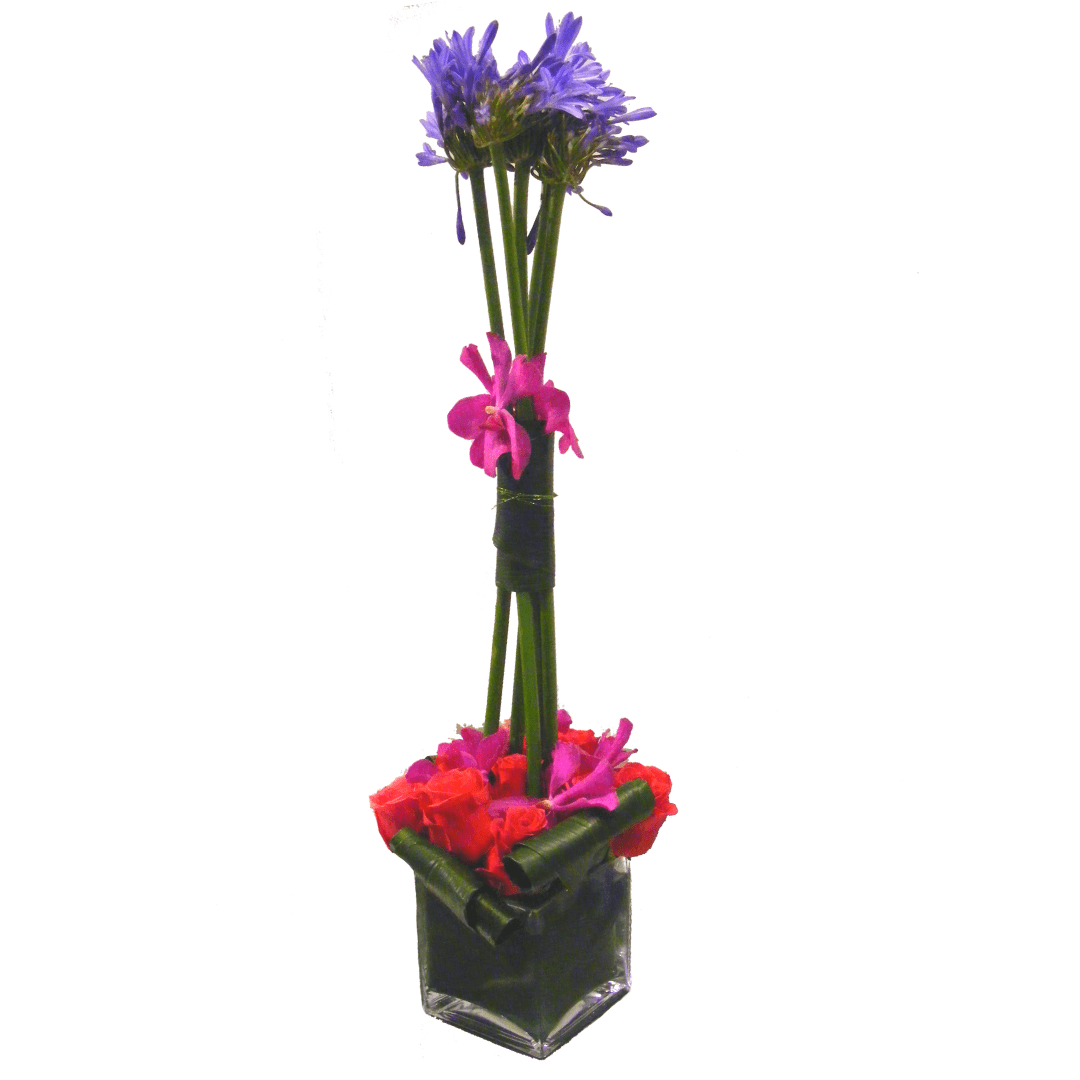 Beautiful modern vase display designed with Orchids and Roses. Large pictured.
