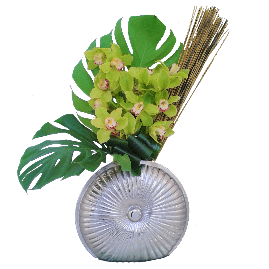 Beautiful modern vase display designed with Orchids. Medium pictured.