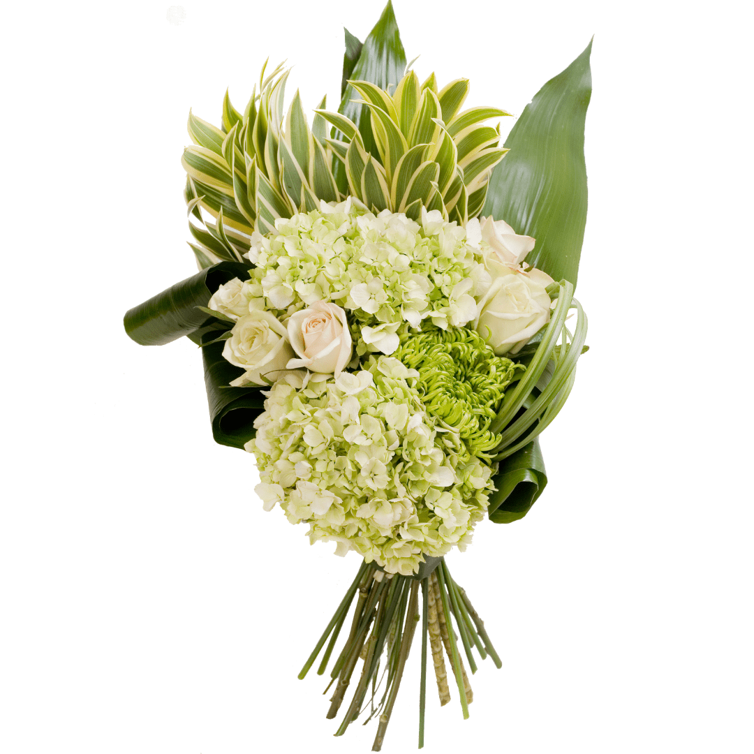 Beautiful bouquet designed with Roses, Hydrangeas and Fugi mums. Medium pictured.